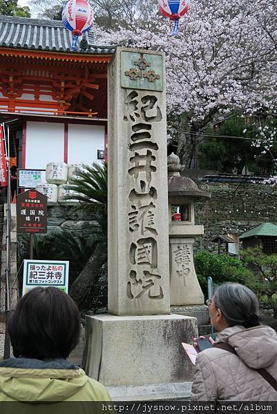 這次行程的最後一個景點─紀三井寺,也是一個「硬要」的景點。不過我們去的時間剛好碰到櫻花盛開,也算是略微消解一路奔波之疲累。