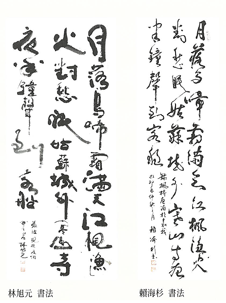 林旭元生於嘉義縣竹崎鄉,高職畢業,竹崎鄉公所公職退休,1983年至1998年參加「大日本書藝院交流展」15回,獲秀作、準特選、特選、推薦、鑑查員、協贊員等賞。1985年任嘉義市書法學會常務理事。參展嘉義縣地方美展、中日親善畫展、現代日本書家協會書道展多次。1993年「諸羅風情特展」評審委員。於嘉義市、雲林縣文化中心,嘉義縣文化中心「梅嶺美術館」等舉行「書法個展」,出版《書法作品集》二本。