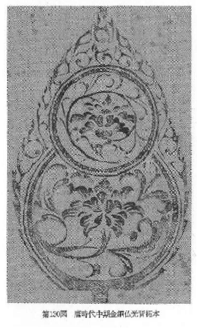 しかし唐においては、この宝相華唐草の花は、いつしか牡丹の姿をとってきた。少なくともそれが牡丹唐草の主流となって行った。前にふれた大智禅師碑の宝相華唐草の花の如きは、牡丹花への志向をひそめているといっても過言ではない。牡丹は、則天武后がその郷里の西河から、長安の宮苑に移して愛賞したことから、天下の士庶の家にひろがったと伝えられ、この花の咲いている二十日ばかりの間は、一城之人皆如狂と白楽天がいう程に、牡丹の愛好が盛んであった。八世紀後半の花鳥画家として、中国における最初の人ともいうべき辺鷲も牡丹を画いている。このような風潮が、牡丹的宝相華の出現を促したのであった。今はその所在を失ったが、中唐を下らないと思われた小金銅仏の光背に、まさに牡丹花といって不可なき透彫の宝相華のあったのを、かつて私は拓本にとっておいた。これも、花弁は凸頭、左右の花弁は柔らかく垂下していることが注意される。それはやがて宋時代の磁器の文様に発展して行き、さらに南宋における金襴の牡丹唐草に展開してゆくのである。しかこの牡丹唐草は畢竟、宝相華唐草のヴァリエーションに他ならないのである。明の永楽帝が、日本足利義満に与えた贈物の記載には、当然牡丹唐草であったこの織物の文様を、やはり宝相華と称している。尤も牡丹唐草の名は、すでに早く日本で行なわれていた。『山槐記』の治承四年(一一八〇)四月二十一日の条に、賀茂祭の近衛使に立った少将藤原顕家の車の物見が、牡丹唐草文であったと記されている。西本願寺三十六人家集の料紙の唐紙にも牡丹唐草が見出される。古瀬戸の子にはしばしば、この牡丹唐草の沈線文が行なわれている。